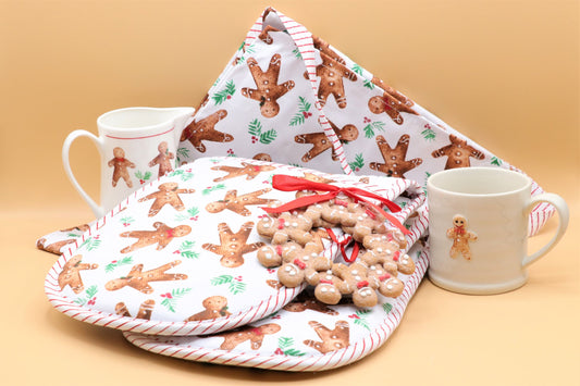 Fabric Oven Gloves, Tea Towel & Apron - Gingerbread Man