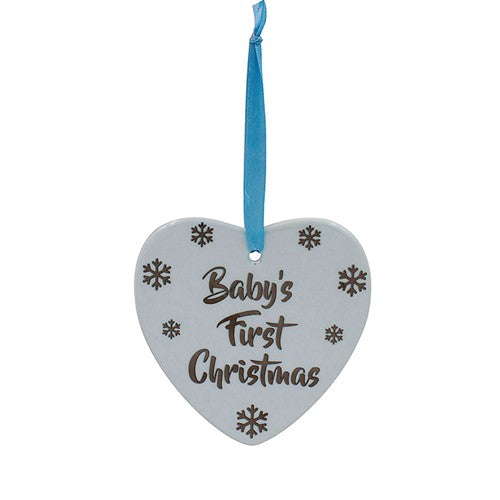 Gorgeous ceramic heart to celebrate Baby's First Christmas, complete with pretty ribbon for hanging.