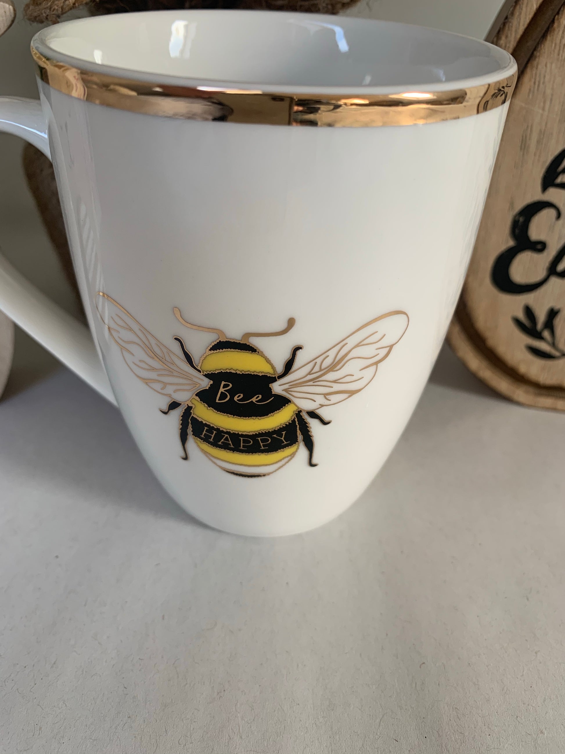 Such a lovely mug, white china with bee printed design on both sides and gold band round the rim.