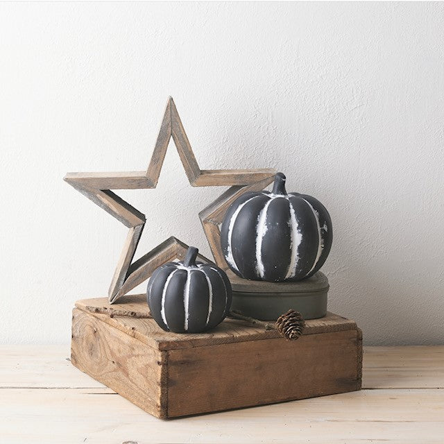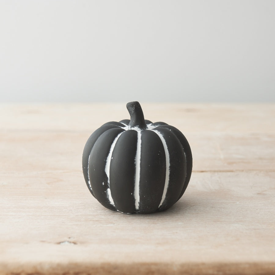 Rustic cement pumpkins in black and white. A beautifully detailed and unique ornament for the home this season.