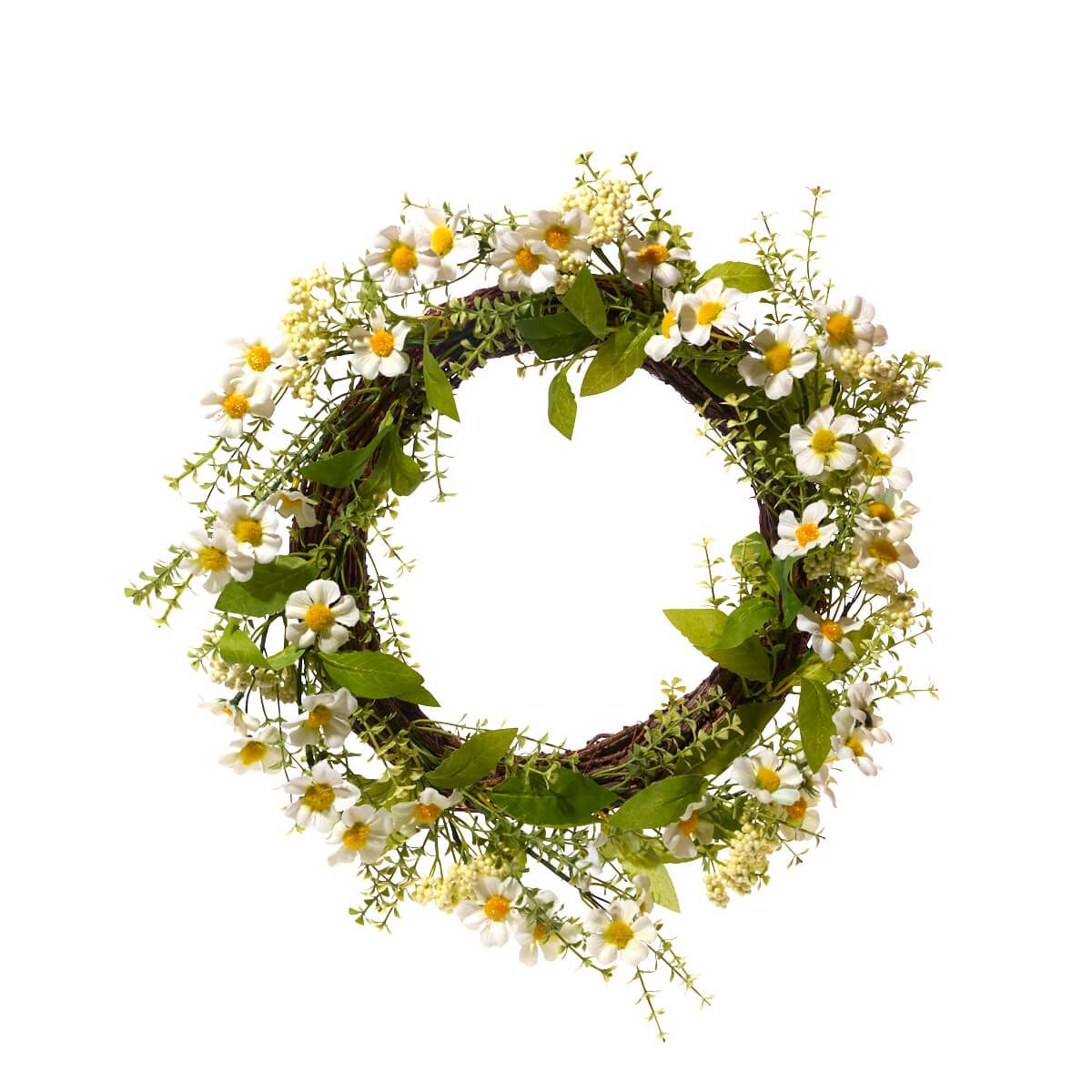 A truly stunning Spring wreath decorated with an assortment of white flowers and green foliage.