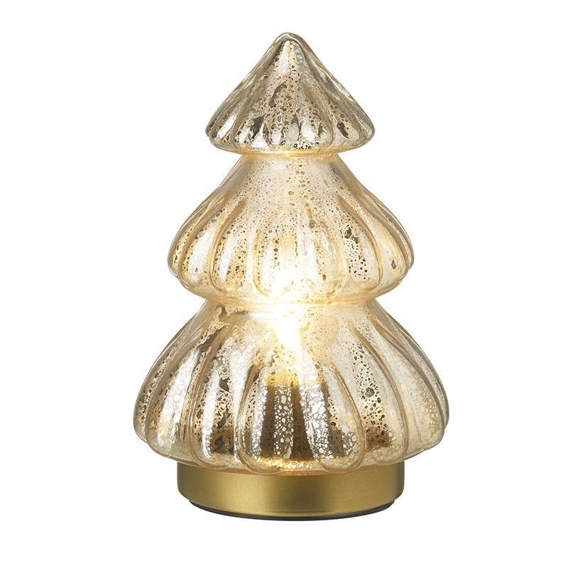 Crafted from elegant glass with a mottled gold finish, this beautiful tree is sure to add a touch of glamour and sparkle to any room with its built-in LED lights.