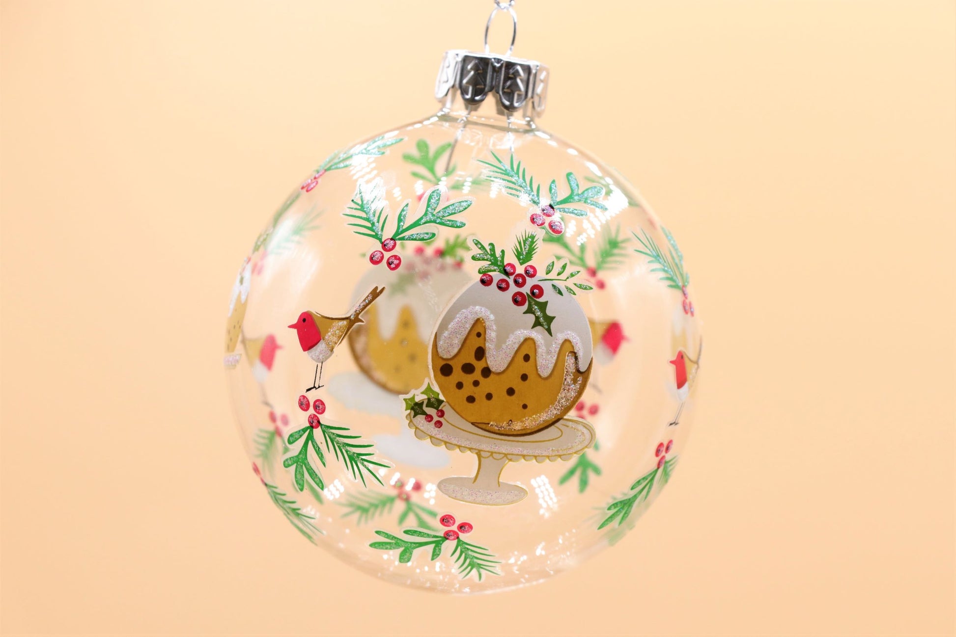 Clear Glass Bauble - Plum Pudding/Gingerbread Men