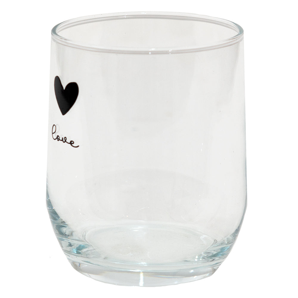 Gorgeous glass decorated with black heart and 'love'. Simply contemporary and elegant.