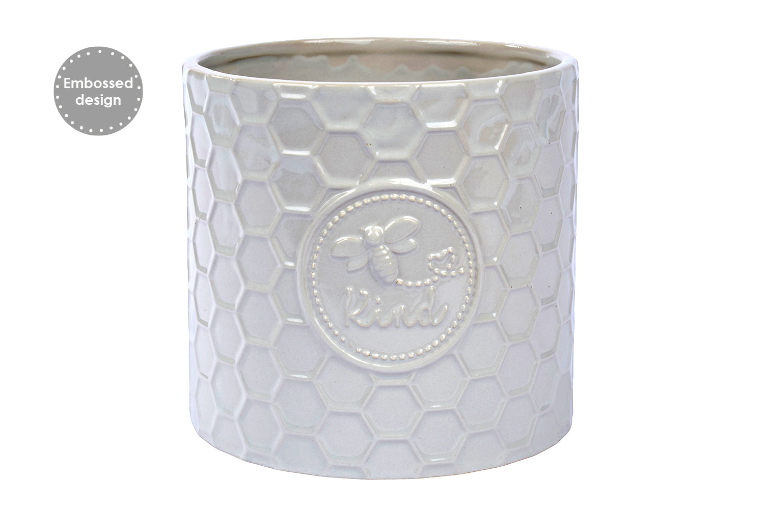 Very lovely Grey Bee Planter with honey comb style finish and 'Bee Kind' embossed design
