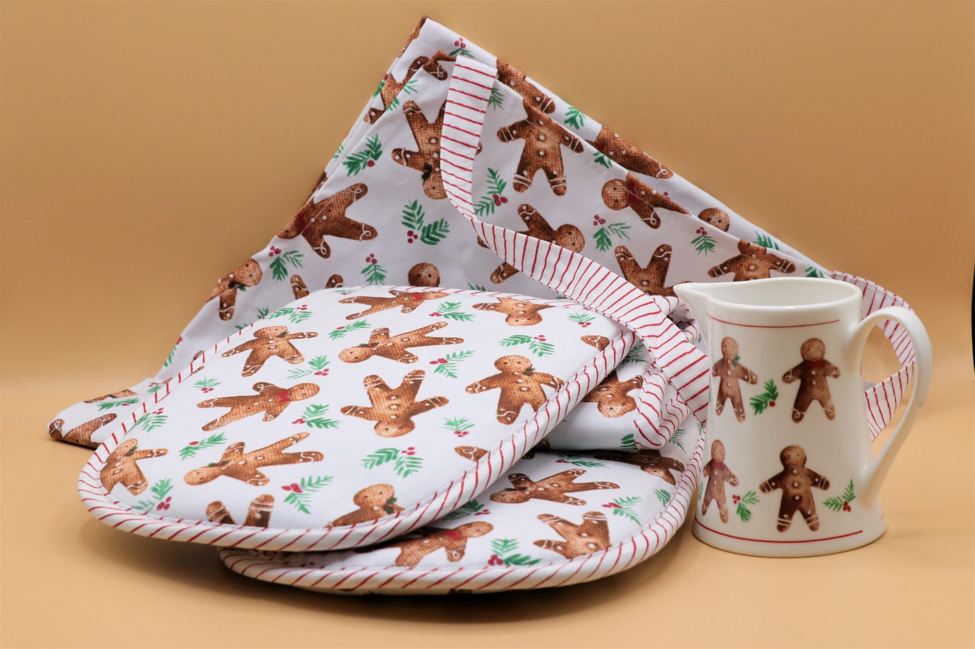 Fabric Oven Gloves, Tea Towel & Apron - Gingerbread Man