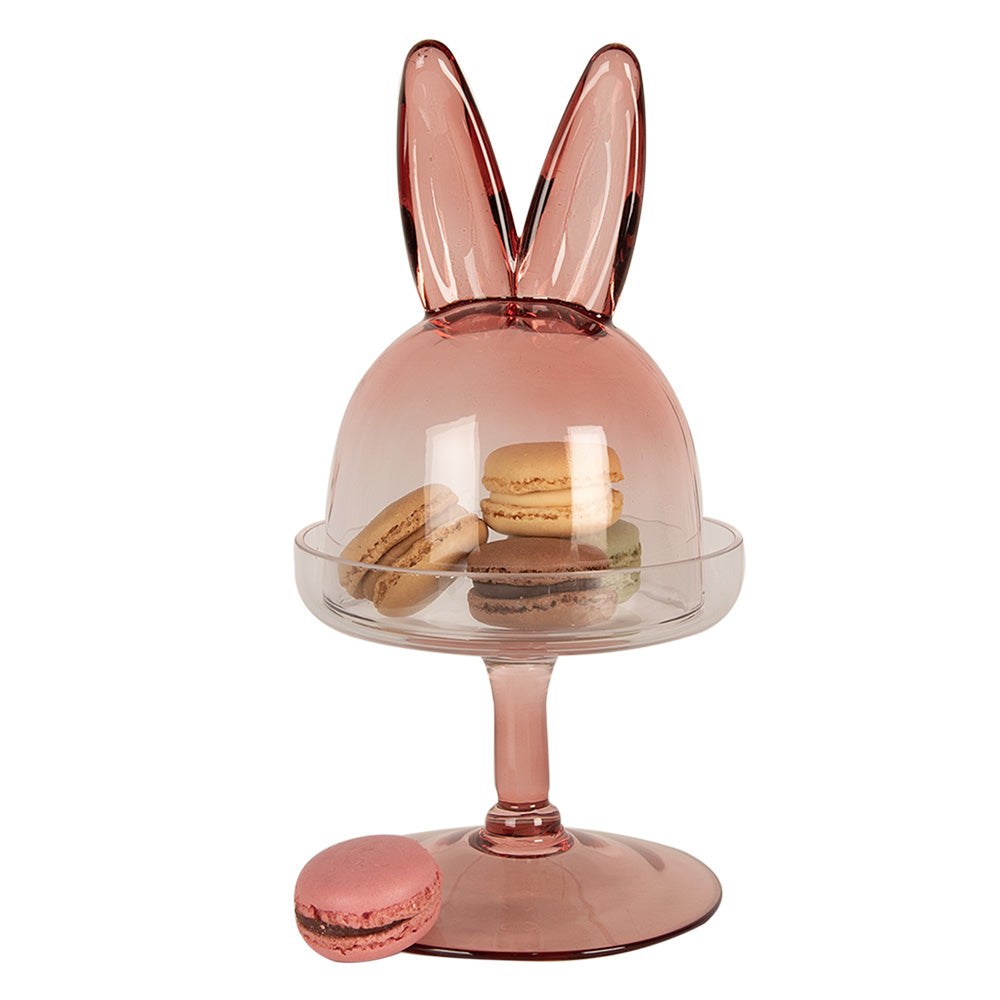 Beautiful glass, pink rabbit-shaped cloche. A perfect addition to any table, providing an exceptionally elegant touch during Easter. The glass bell is 9 cm in height.