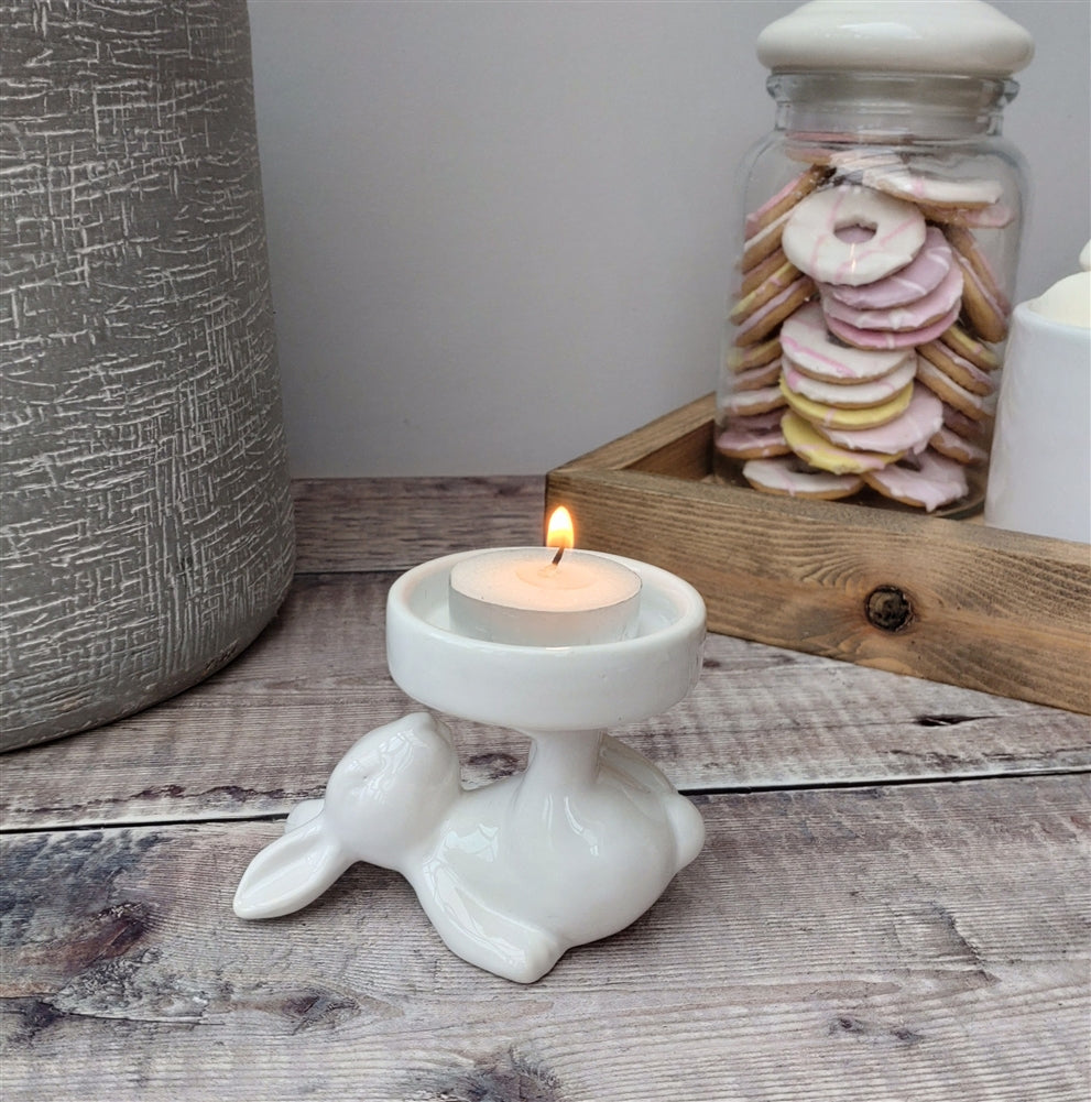 A cute ceramic rabbit on it's back, balancing a plate large enough for tealights, candles, or even cupcakes! Perfect for stylish Easter displays and country style interior design