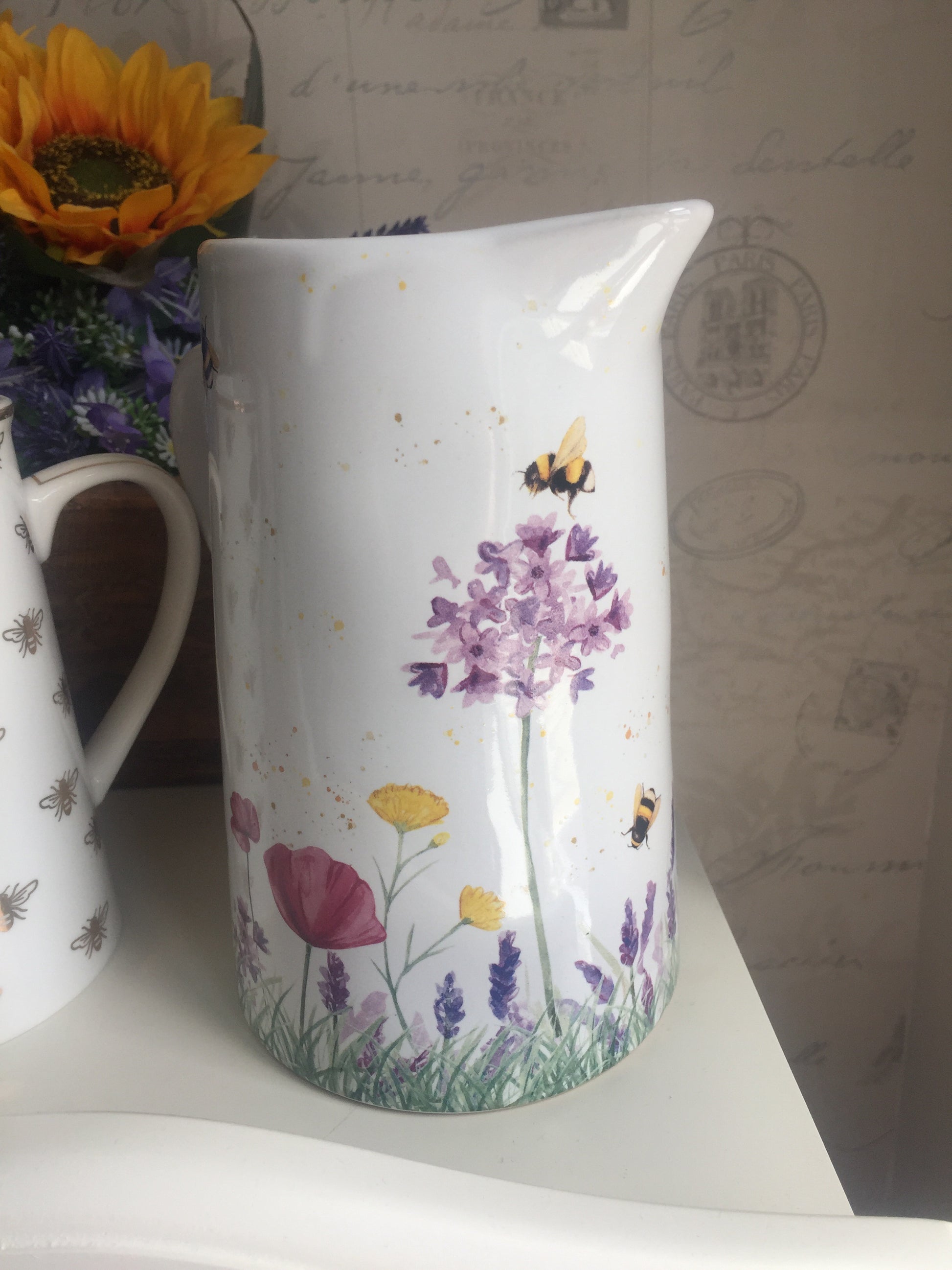 Approx 18cms in height, makes a lovely vase for flowers as well as a perfect jug for drinks at the table.