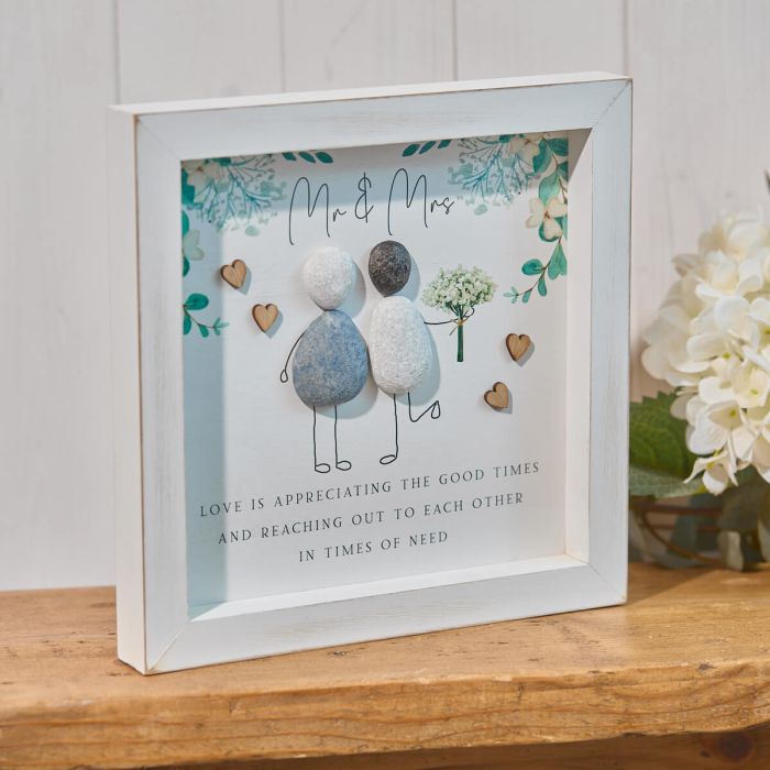 Framed wooden plaque with pebble Mr & Mrs design. Makes such a gorgeous wedding gift for the happy couple.