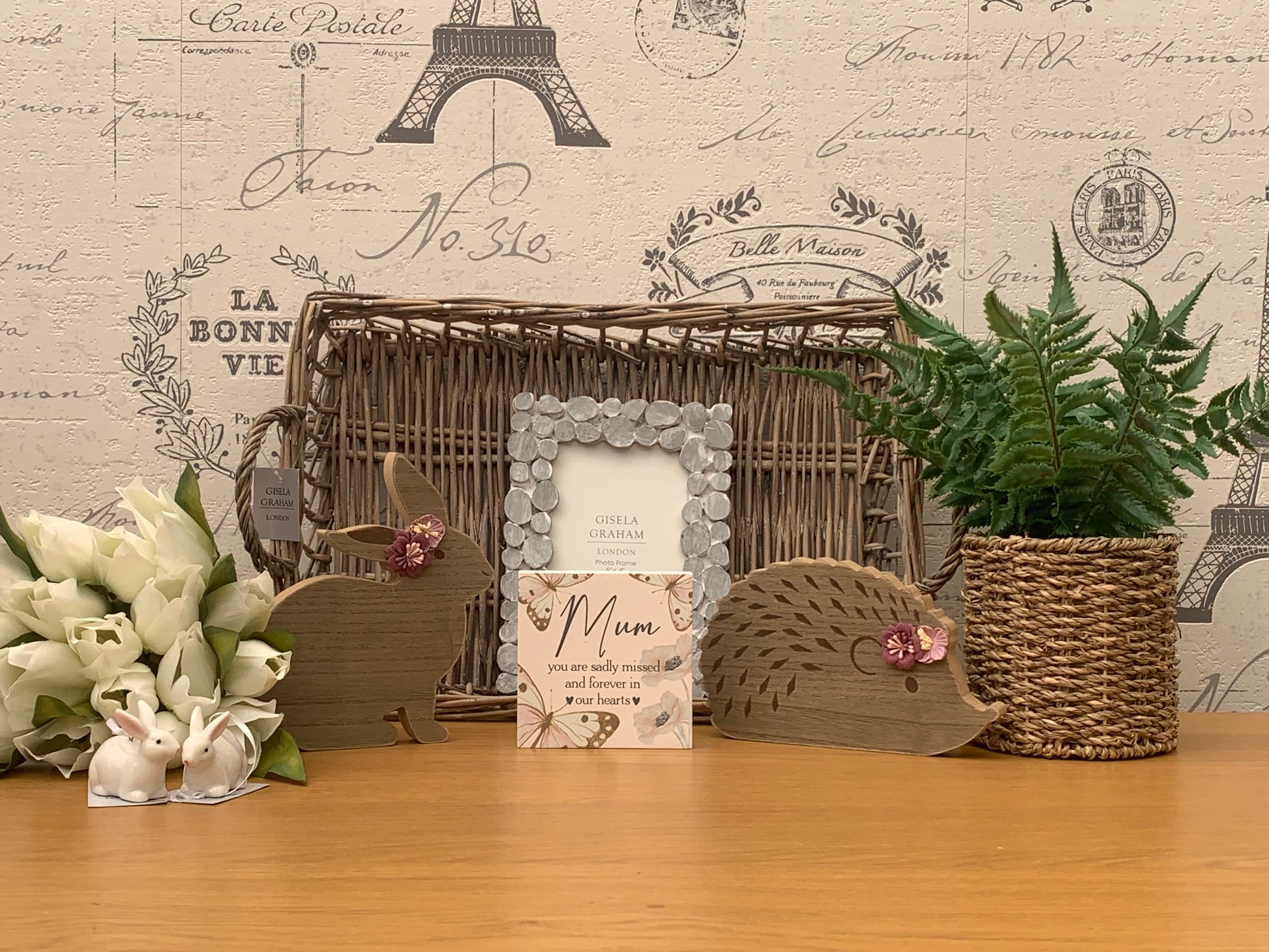 New & fabulous! Wooden blocks in hedgehog and rabbit designs, each one decorated with two pretty pink flowers. Gorgeously cute!!