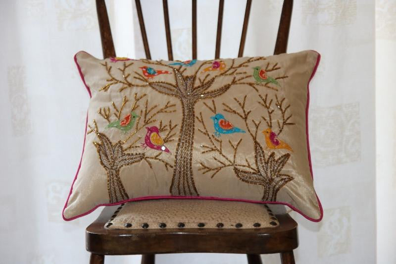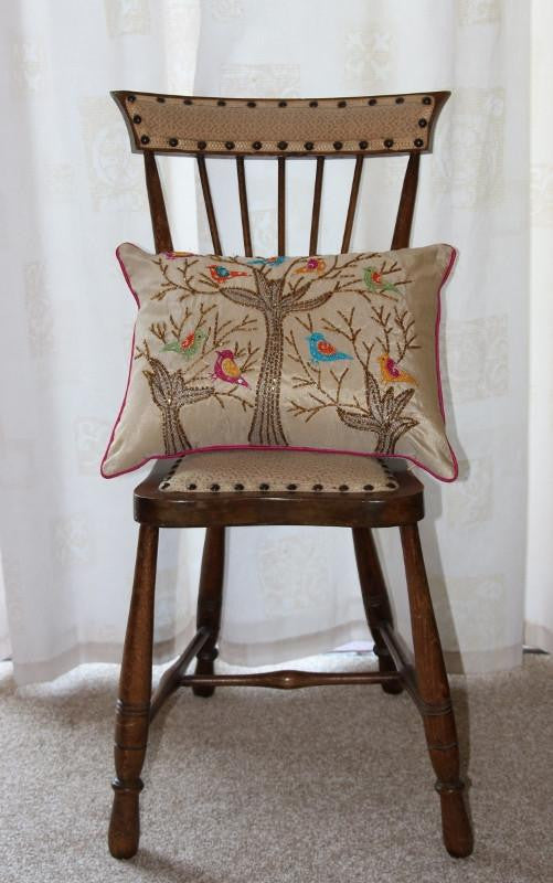 Canvas cushion with embroidered tree finished with Sequin Birds detail
