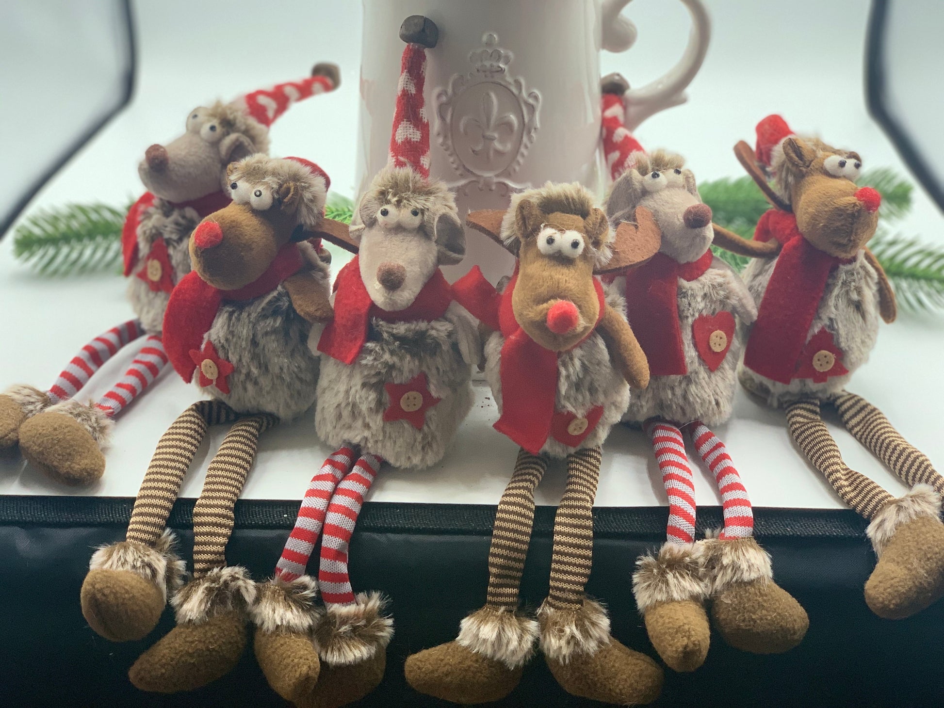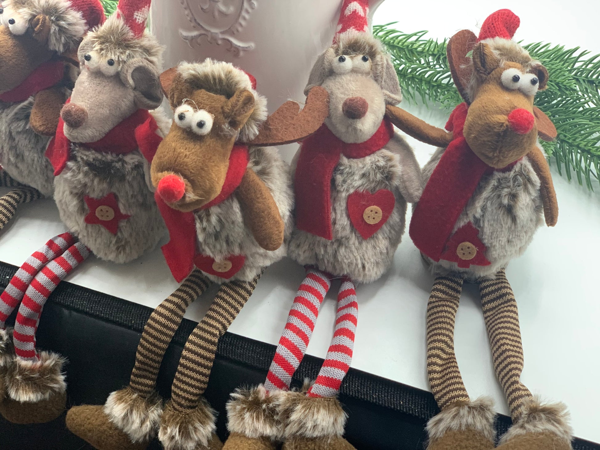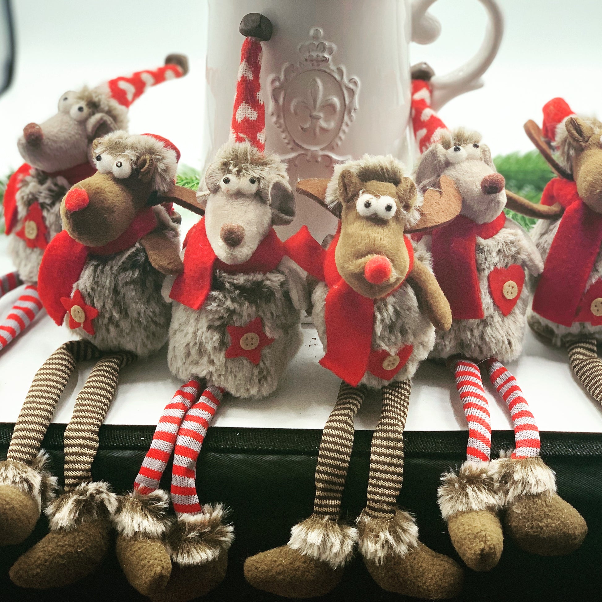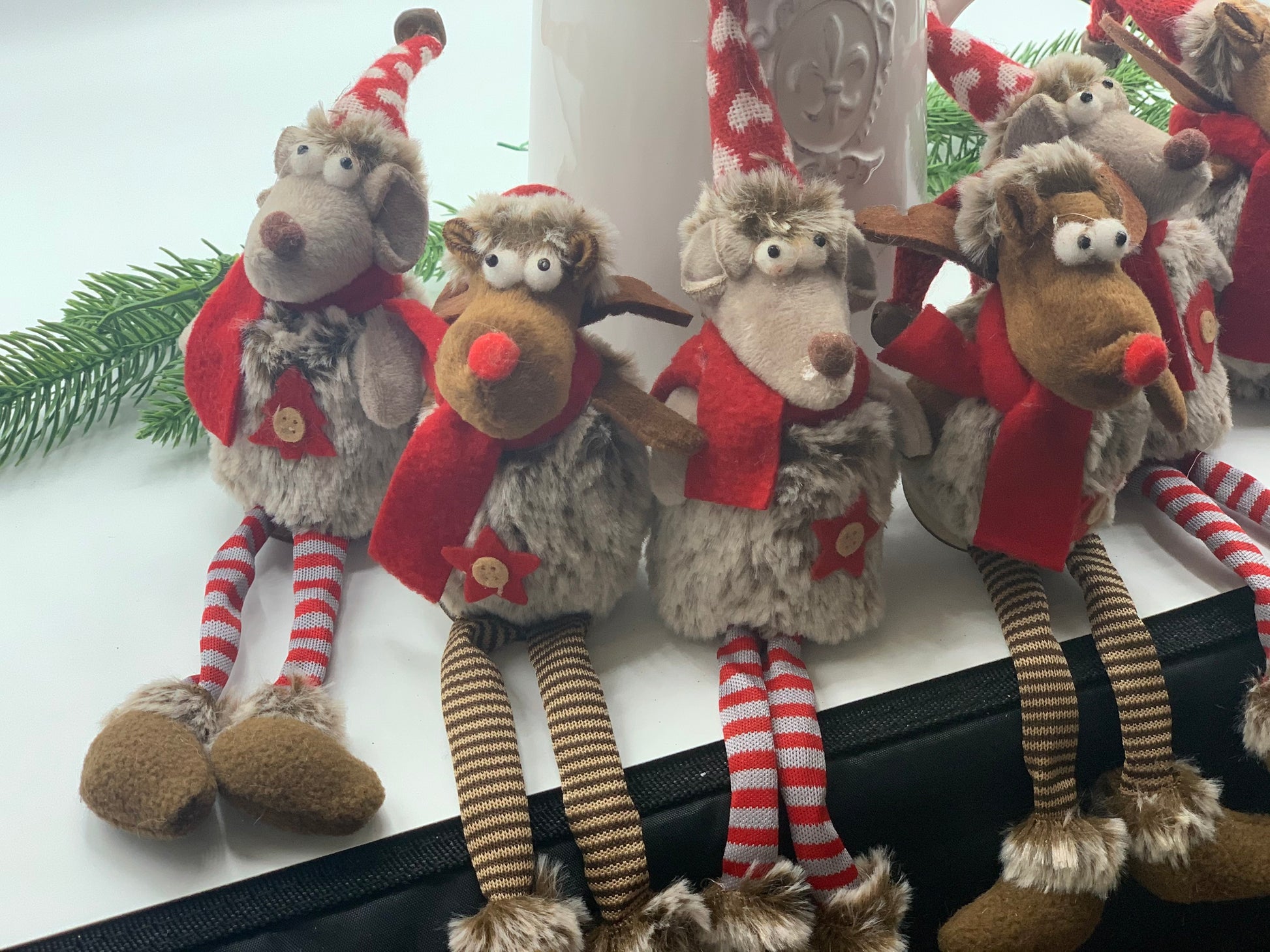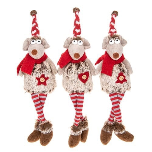 Gorgeous Christmas Mice with dangling legs, sit beautifully on a shelf or mantle to watch over your festivities.