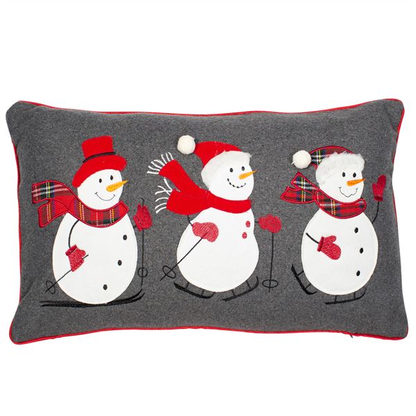 Very gorgeous & plush grey felt cushion featuring 3 Christmas snowmen. Highest quality cushion, lovely festive item