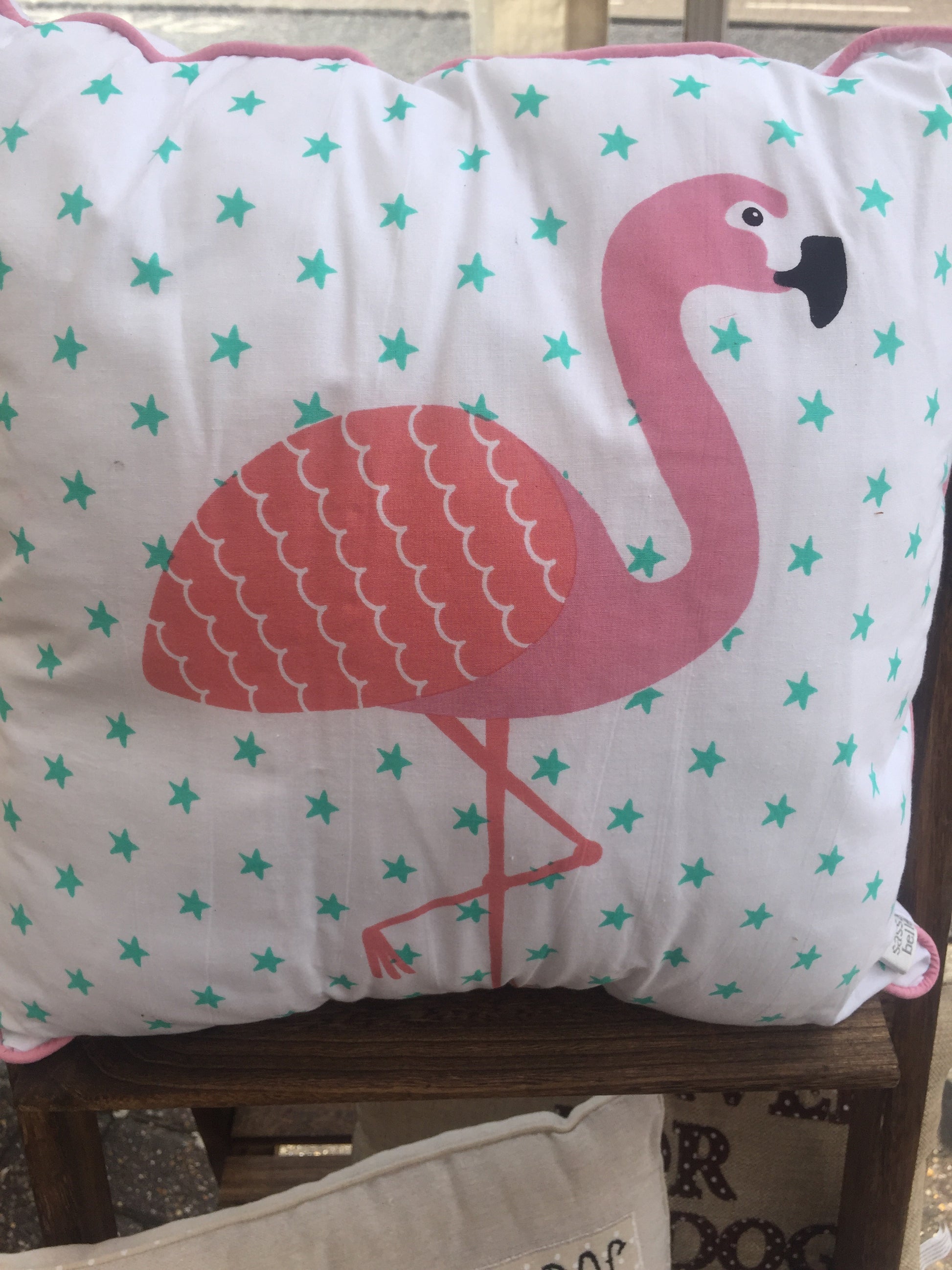 Gorgeous white & pink cushion with a flamingo design and pink piping around the edges
