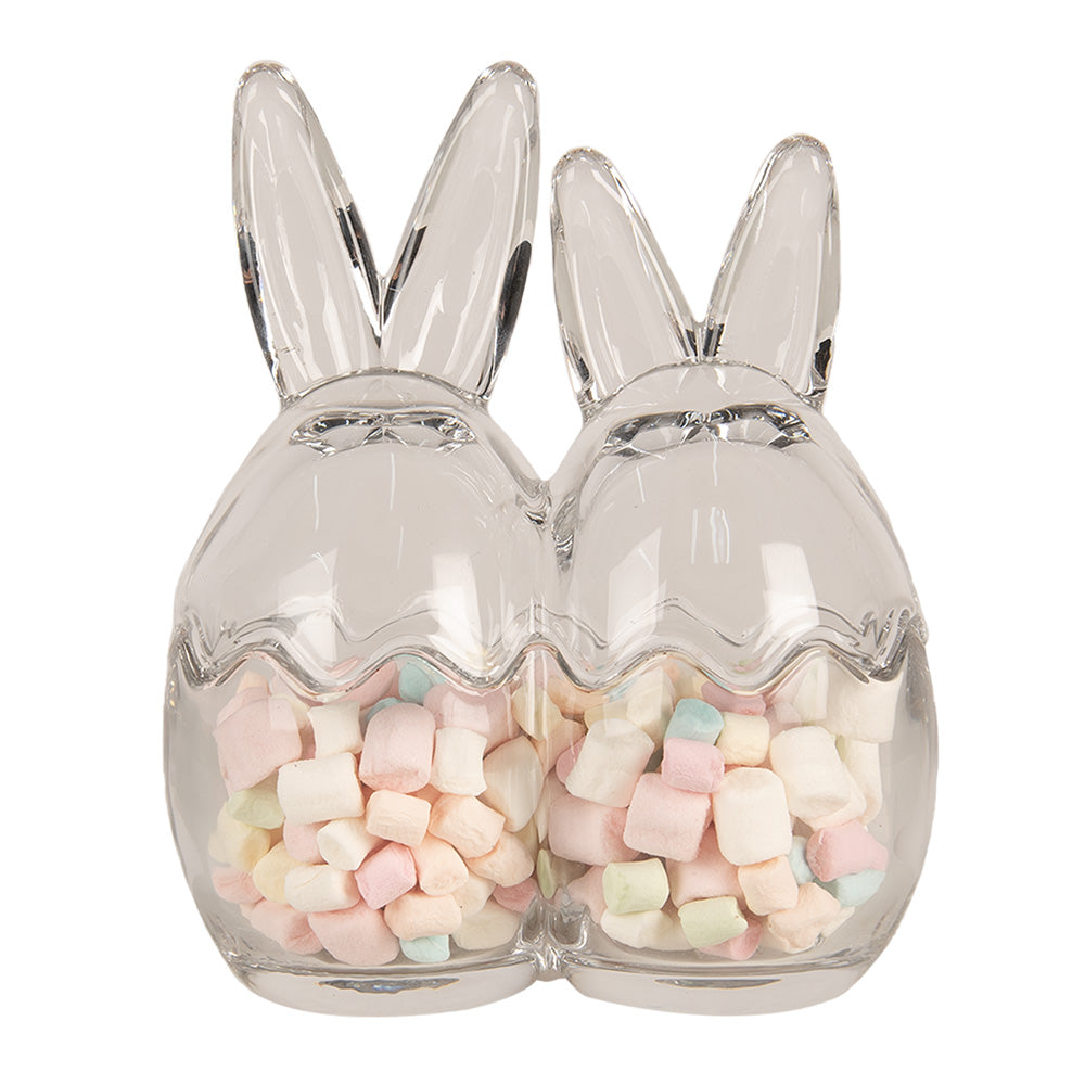 Beautiful transparent romantic glass jar with a lid featuring rabbit ears on top & a smooth finish. Also very nice to present Easter eggs. Combine storage jars and play with the different sizes and heights and create the cosiest kitchen out of everyone!