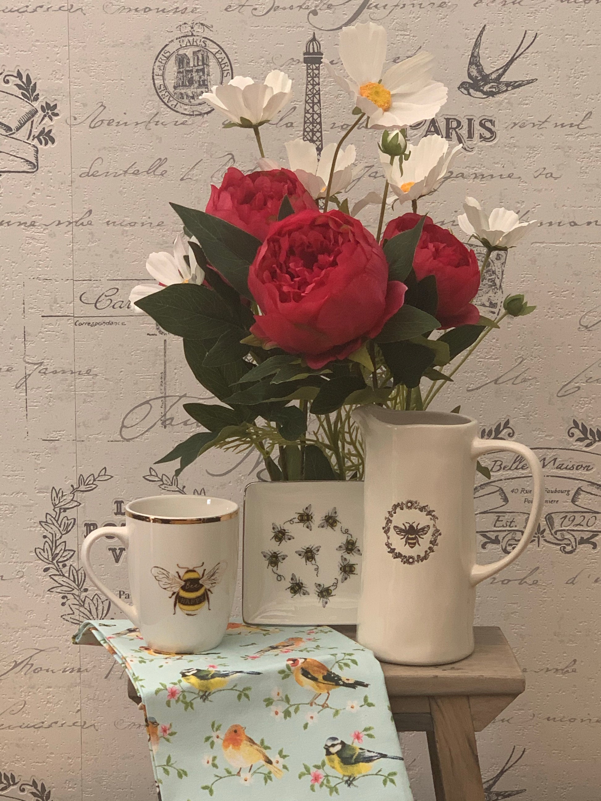 We love this jug! It's 'wavy' finish is totally unique and really adds to the style, the circular bee design completes a truly special jug.
