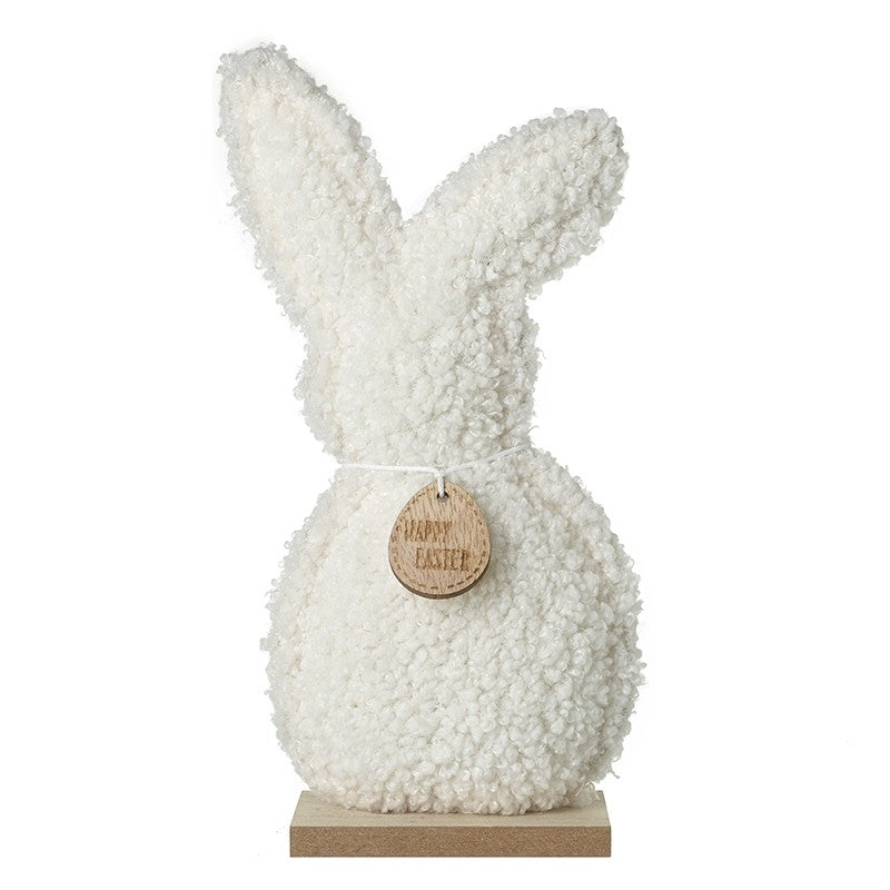 Small: A chic, white bunny ornament with a wooden tag reading 'HAPPY EASTER'.