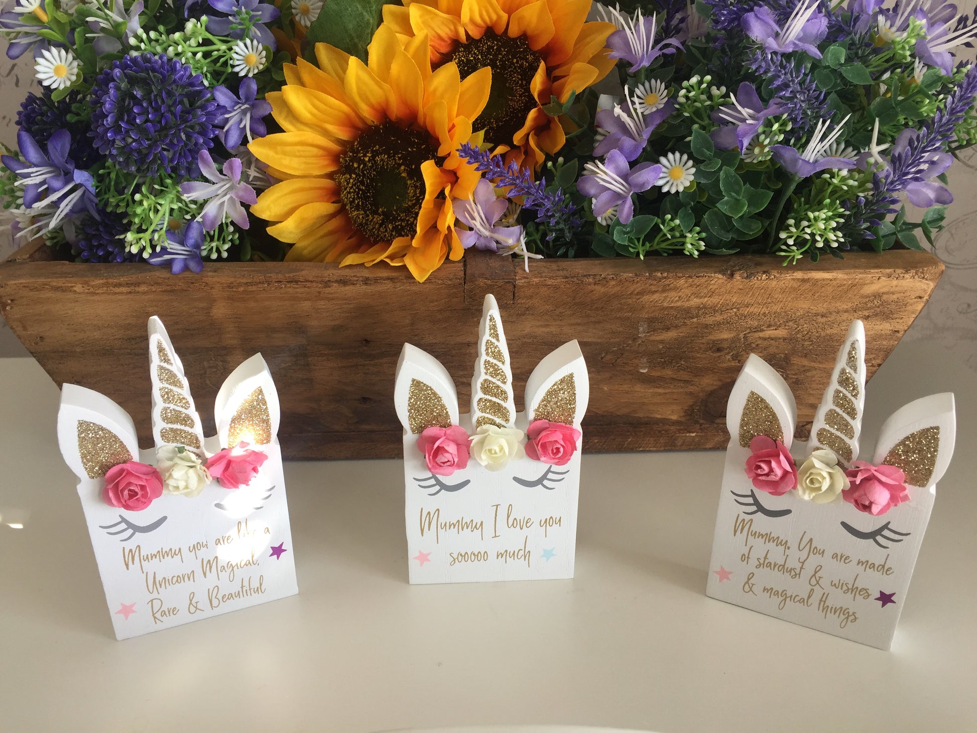 The cutest way to tell Mummy how special she is, available in 3 designs our wooden stand up unicorn is sure to make her happy.